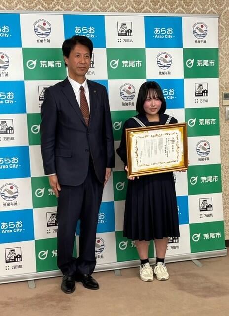 「夜の横断歩道を、もっと安全に。」 そんな願いから生まれた3年生・斎田さんのアイデアが、いよいよ現実のものになろうとしています。12月の「ENAGEED SUMMIT 2025」で日本一に輝いた斎田さんが、荒尾市役所を表敬訪問。浅田市長へ「プロジェクション横断歩道」の提案を行いました。