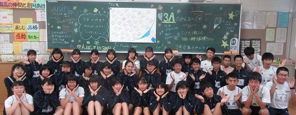 今年度は校内のコンクールで優勝した3年A組が参加しました。玉名荒尾地区の16の中学校が集まり、それぞれに練習してきた成果を披露しましたが、どの学校の演奏も熱いものが感じられ、大変素晴らしい音楽会となりました。本校では本番の数日前に、3年B組から出場する3年A組に、サプライズでメッセージが送られました。仲間を思いやる行動に学年の絆を感じました。