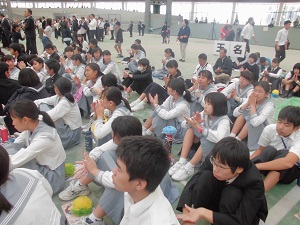 10月13日(土)、2年生75人と1、3年生の人権ボランティア委員、生徒会執行部の生徒で、パークドーム熊本で行われた、平成30年度熊本県人権子ども集会に参加しました。県内から集まった小・中・高それぞれの代表の皆さんが、体験・活動報告を行い、生徒たちは熱心に話を聞いていました。また、「踏み出す勇気を~あなたの一歩で伝わる・繋がる・広がる~」をテーマに行われた全体活動では、生徒たち一人一人が自分たちで作った紙花を持ち、手話を踏まえた振り付けをしながら、歌を歌いました。最後に「熊本県人権子ども集会アピール文」の採択に賛同し、人権を尊重することの大切さを再認識しました。