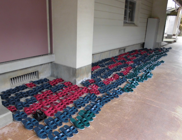 体育館に入る際には、生徒会の協力もあって、スリッパがきちんと並べてあります。
