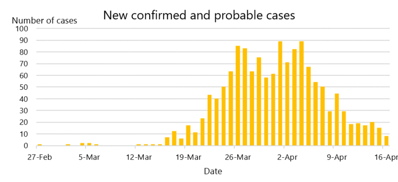 さらに、3月26日に国民に対し4週間の「ロックダウン」(都市閉鎖や外出禁止を意味します)を命じました。その後も感染者の増加は続きますが、10日を過ぎた頃から減少が始まります。そして昨日ついに1桁の8人になりました。