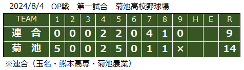〈部員I〉2024/8/4 新チーム結成後、初のOP戦を終えてこの菊池高校との練習試合は合同チーム結成後、はじめての練習試合でした。