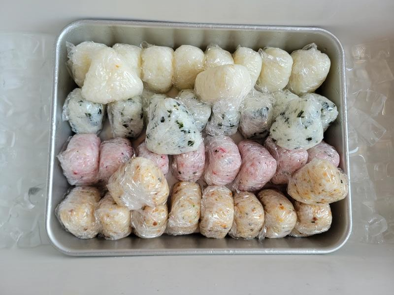 多くの種類のおにぎりを作りました。もぐもぐと食べてくれています。