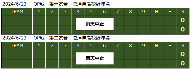 6月23日(日)に予定していました唐津東高校との練習試合は雨天のため中止となりました。