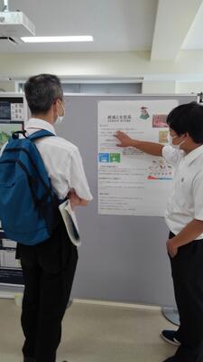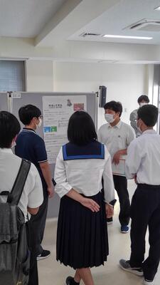5月27日(土)、「三学合同熊本大会2023」が熊本大学で行われました。この大会は、「九州沖縄植物学会(第72回)」「⽇本動物学会九州⽀部(第75回)」「⽇本⽣態学会九州地区会(第67回)」が合同で行う学術集会で、大学関係者や大学生が主に発表する大会です。高校生も参加することができ、今回は学校の「総合的な探究の時間」で研究した「絶滅と生態系」というテーマで、本校3年生の鹿子木真陽さんがポスターセッションに参加しました。周囲に多くの大学生や大学関係者もいる中で、集まった聴衆に対して堂々とした発表や質疑への対応を見せていました。今回の発表会への参加は大きな刺激となったようです。今後の更なる活躍に期待しています!