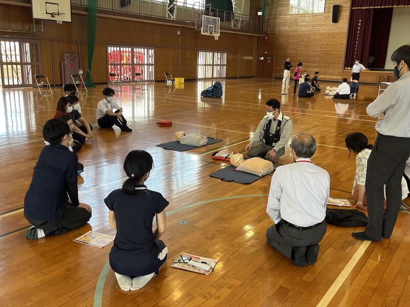 研修内容:講話および実習【心肺蘇生法(AEDの使用法含む)】【アナフィラキシー対応(エピペンの使用方法含む)】