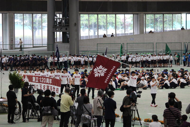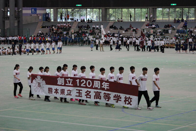 本校からは陸上部の生徒が「創立120周年」をPRするための横断幕を掲げ、堂々と入場行進を行いました。