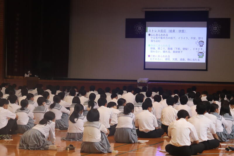 6月22日(水)に、本校スクールカウンセラー石丸貞子先生が、ストレスにどう向き合い、どう対処していくかのお話をしてくださいました。