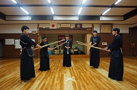 今年度の定通総体に出場する選手紹介の最後は、剣道チームです。24名中17名が男子生徒である玉定では、体育科の仲山先生がやる気のある生徒を集めて剣道団体戦に初出場します。2年次生1名、3年次生4名の合計5名の生徒たちです。5名のうち3名が未経験のため、昨年度1月頃より週に2~3回の練習を重ねてきました。最初はなかなか大きな声が出せず、慣れない動きに戸惑うことも多かったようですが、初心者の生徒たちもかなり上達しています。定通総体練習では、福永部長のもと、剣道専門の仲山先生に加え、剣道経験のある木下教頭先生も指導されています。皆さんが練習の成果を存分に発揮し、全国大会に出場できることを期待しています。