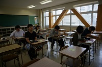 苦手な問題を最終確認! 早めに登校して練習中~ 終了後、ほっと一息