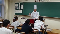 6月21日(木)、総学「灯8」で「職業理解講座」を実施しました。事前のアンケートで生徒達の興味・関心が高かった3分野の職業について学べる専門学校から、講師派遣をしていただきました。「調理・製菓の仕事」には専門学校常盤学院、「デザインの仕事」には熊本デザイン専門学校、「工業の仕事」には熊本工業専門学校からの講師派遣でした。