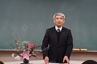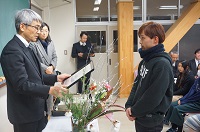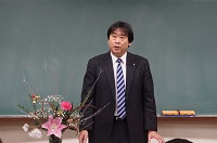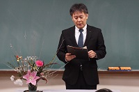 その後の生徒集会では、木下教頭先生による講話からスタート。本校の大先輩でもある坂村真民さんの「念ずれば花ひらく」の詩のように、「年末年始は日頃会うことのない人と会って、刺激を受けて、ぜひ念じたい夢や目標を見つける機会にしてほしい」と話されました。