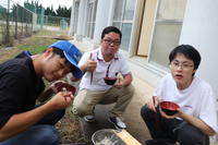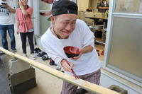 夏休みが終わり、久しぶりの登校日となりました。毎年、玉定では夏の風物詩としてそうめん流しをしています。朝から激しい雨が降り心配されましたが、竹を組み出すと小降りになり、少し早めに登校した生徒会メンバーが、おにぎりの準備など手伝ってくれました。生徒が揃いだした17時30過ぎ、いよいよそうめん流しがスタートしました。今年の夏は暑い日が続き体調等心配でしたが、ほとんどの生徒が登校し、そうめんやかき氷を食べながら、夏休み中にあった出来事などを報告し合い、にぎやかな雰囲気に包まれました。そうめん流しの後は生徒集会。最初に、日本武道館で行われた全国定通総体(剣道)に出場した生徒より、報告が行われました。また、全国大会終了後におこなわれた昇段試験では、受験した4人全員が初段と2段の試験に合格という、うれしい発表もありました。その後久しぶりの校歌斉唱をしました。明日から、いよいよ授業が始まります。前期終了まであと1ヶ月。暑い日が続きますが、皆で乗り切っていきましょう!