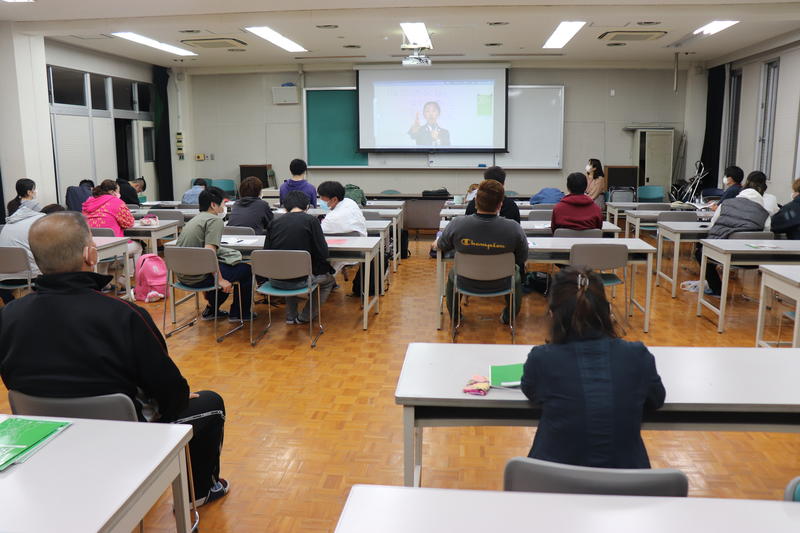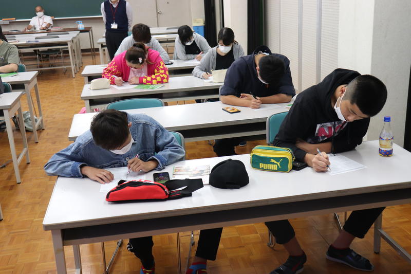 生徒たちは、テキストを見ながらメモを取り、一生懸命に講話に集中して学習しました。