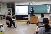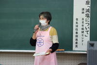 食生活改善推進員の方が、生徒たちに「朝ごはんについて」と「減塩について」のお話をしていただきました。