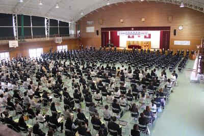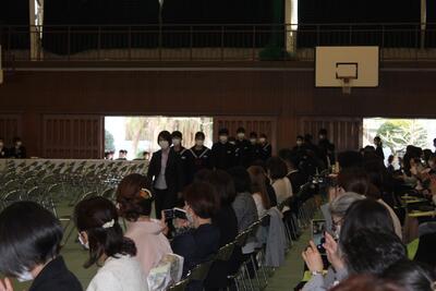 令和4年4月8日金曜日に入学式が挙行されました。新しい制服を身にまとい、緊張の面持ちで初々しさ一杯の新入生70名。担任を先頭に入場する姿に自然と笑みがあふれました。
