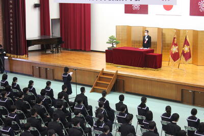 新入生代表による誓いの言葉「高い学識と豊かな人間性を備えた次世代のリーダーを目指し、日々努力していきます。」ついこの間まで小学生だったとは思えない生徒のことばに、感心せずにはいられませんでした。