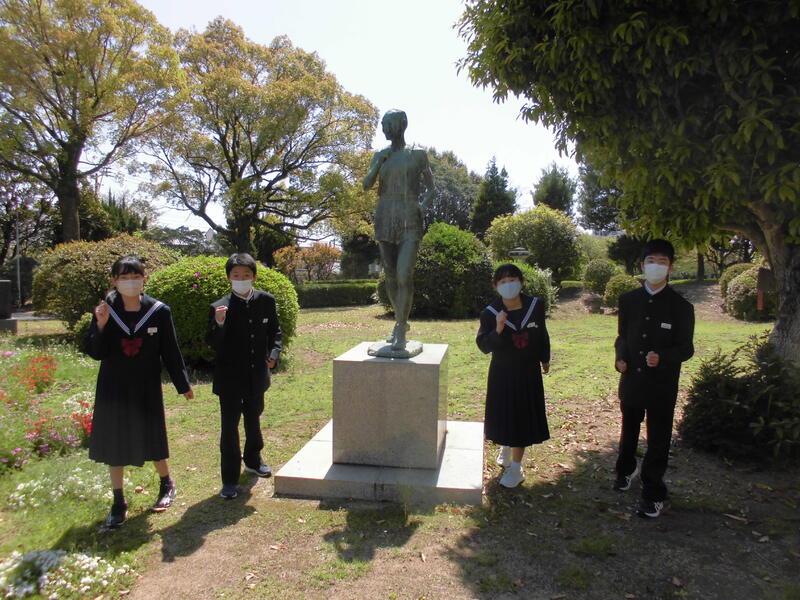 チェックポイントは、校内コースが中学職員室、校長室、保健室、美術室、さくらの広場など10カ所。外コースが若駒寮、金栗氏像、自転車小屋、ゴミ分別場など7カ所。