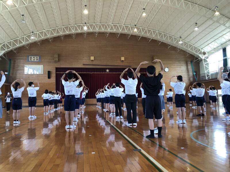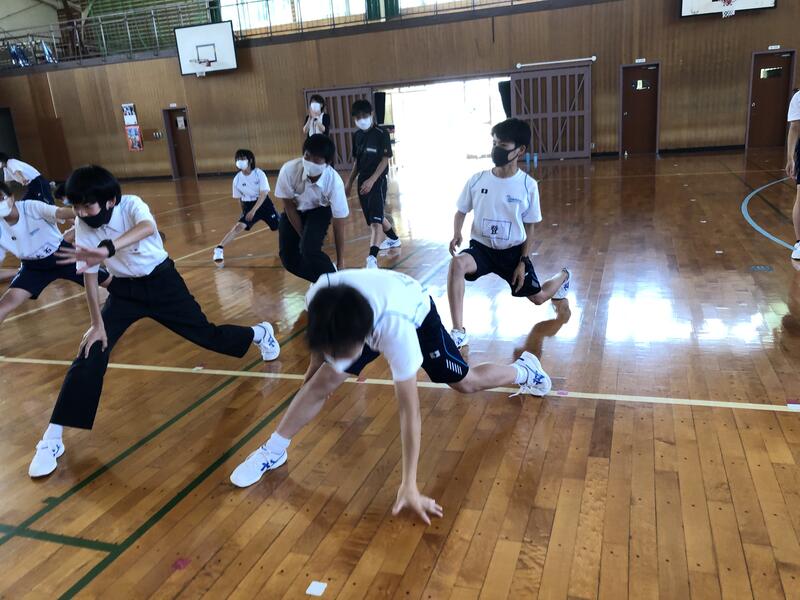 約1時間練習をした後、学年を2つのグループにわけて、演技の発表会をしました。短時間で皆、よく頑張りました!