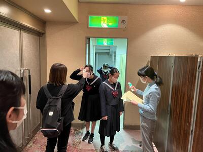 恒例の体温チェックで異常がないことを一人ひとり確認します。