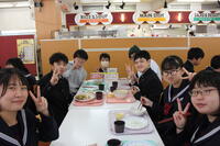 熊本大学では、入試・就職戦略室の吉永名誉教授から大学説明を受け、その後卒業生9名の先輩方と懇談会が開かれました。その後みんなで学食に直行し、思い思いの昼食を美味しくいただきました。