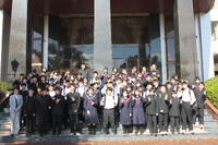 12月4日(水)、中学1年生が熊本大学と崇城大学に大学訪問に行ってきました。何日も前から楽しみにしていた研修旅行です。午前7時に集合し、7時20分に出発。早朝からの活動でしたが、全員元気に出発しました。