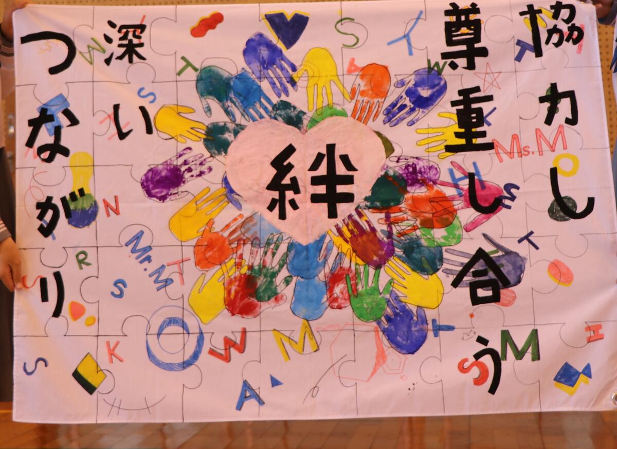 1A「絆~協力し 尊重し合う 深いつながり~」(学級目標とスローガン)