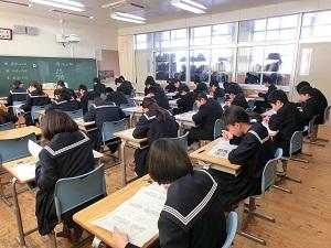 本日は実力考査2日目。社会と数学が行われました。教室では朝から教科書や問題集を開いて学習する生徒達の姿が多く見られました。
