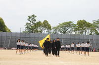 昨日の雨が信じられないほどの晴天のもと、体育祭の予行を行いました。入場行進や競技だけでなく、役員の仕事も高校生と一緒にリハーサルしました。玉名高校附属中生も本番さながらの本気モードで、元気に参加できました。これまで、3年生リーダーを中心に、自主的に練習を積み重ねてきました。12日(日)の本番は、保護者の皆様や地域の皆様に、生徒たちの頑張りを披露することができると思います。是非見にいらしてください。