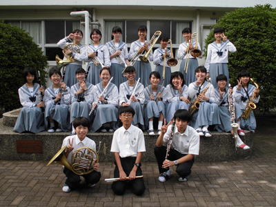 器楽部です。今年は1年生が7名入部してくれたので全員で20名になりました。7月27日の吹奏楽コンクールに向けて日々練習しています。