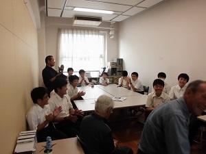 自己紹介の中で、石原先生、隈部先生は玉名高校の大先輩で、石原先生は、第3回全国高校駅伝競走大会(昭和27年)の優勝メンバーということが分かり、生徒の皆もびっくりでした。「金栗四三先生に、直々に指導を受けて・・・」という言葉には、本校の歴史を感じました。