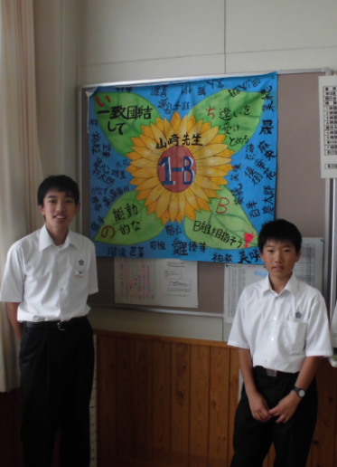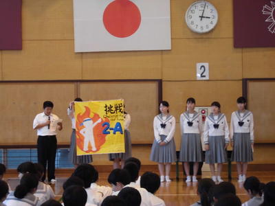 本校では、毎年、学級旗を作成しています。クラス目標、生徒の皆の熱い思いを見える化し、行事でも活用していくことで、活動の活性化を図っています。