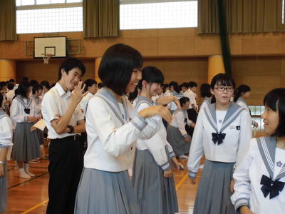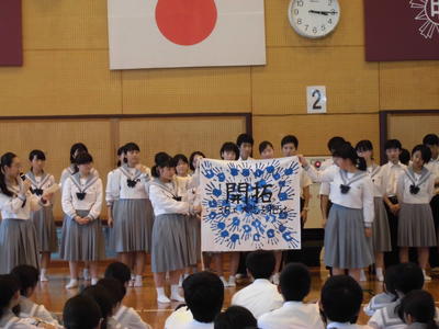 プロローグでは、3年生も参加し、沖縄の言葉(方言)「うちなーぐち」、沖縄の踊り「マミドーマ」を体験しました。本番に強いという玉高附中生の本領を発揮し、堂々とした舞台でした。
