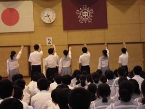 6/27(木)第1回人権集会を実施しました。縦割り班活動の班ごとにジェスチャーゲームをしたり、クラス毎に学級目標や学級旗を披露しクラスのきずなを再確認したり、全校生徒で交流を深めました。