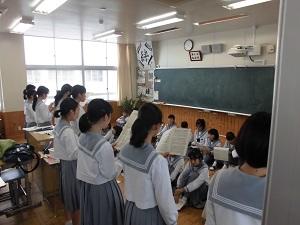 パート毎に分かれて、3年生が練習を進めていました。リーダーさんがしっかりリードしていました。
