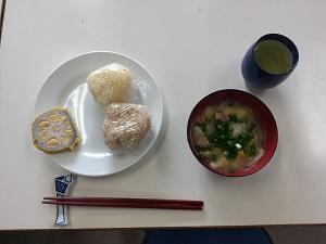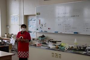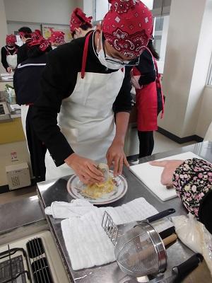 メニューは、ジューシーご飯、お姫様だんご汁、辛子レンコンです。特に、辛子レンコンは、作るのはもちろんのこと、食べるのも初めてという生徒さんもいて、とても興味深く取り組んでいました。