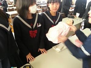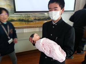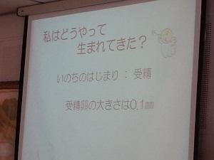 講話の中では、実際の大きさに作られた胎児人形に触れるなど、いのちの始まりからの成長過程を学ぶことができました。1年生の皆さんは、みんな、真剣に話を聞いていました。