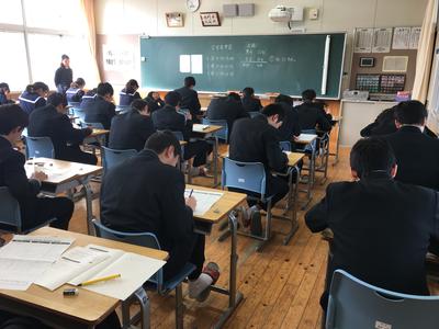 2月10日(月) いよいよ、中学校も学年末考査が始まりました。生徒たちの気合いは十分に感じられました。テスト最終日まで気合いを維持して頑張りましょう!