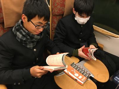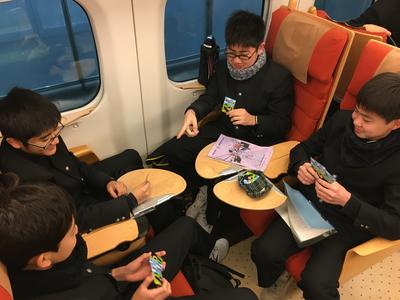 本日から3泊4日の修学旅行が始まります。新玉名駅での出発式を終え、大阪へ向かう新幹線の車内で、生徒達はトランプや英単語学習などをしながら過ごしています。