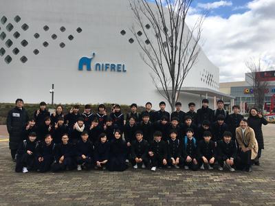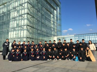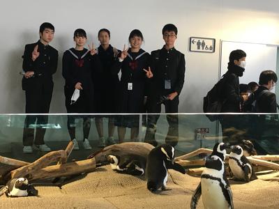 中学2年生の修学旅行。最初の目的地である大阪の「ニフレル」に到着です。ペンギンやクラゲなど、様々な生き物の生態に触れることができました。まさに本物体験です!