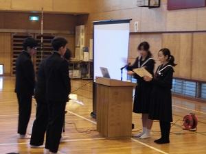 2月3日(月)玉名高校附属中学校は、生徒朝会を行いました。