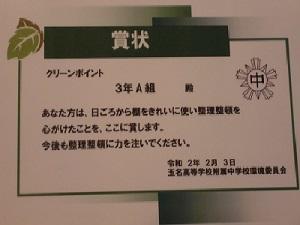 次に、環境委員会から「クリーンポイント表彰」。日頃からの環境美化の取り組みを、ポイントとして積み上げていくという活動ですが、その表彰を行いました。