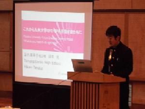 アメリカの大学を目指す田中くんですが、そのきっかけとなった中学の時の海外研修への参加、その後の英語の勉強など、順を追って,自身の思いを後輩へ話してくれました。