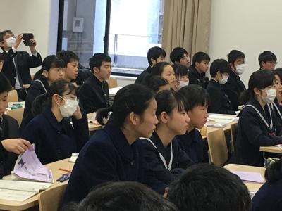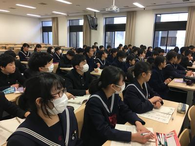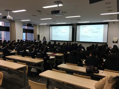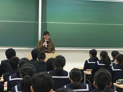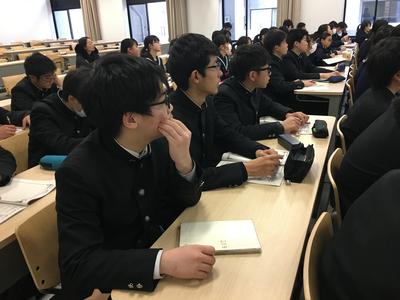 体験講義を終え、次は玉名高校から京都大学へ進学された玉名高校附属中学校3期生の吉井先輩から、勉強の仕方や大学生活について話をしていただきました。