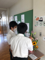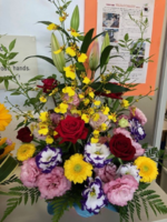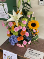 一つは中学生全員が毎日必ず通る廊下に、もう一つは中学校職員室に飾らせてもらっています。明るく華やかな花たちのおかげで周囲がパッと明るくなりました。