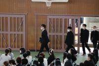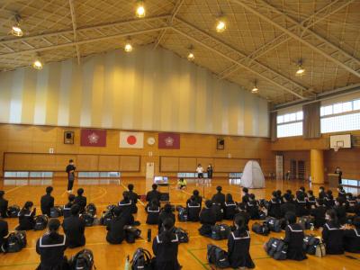 附属中3年生は体育館で放送を聞きました。その後、引き続き学年集会が行われました。