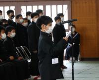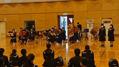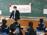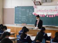 中学校の先生方や生徒会執行部の紹介のあと、岩嵜副校長先生、生徒指導部の仲山先生からのお話がありました。岩嵜副校長先生は、「挑戦」をテーマに、「新しいことに挑戦しよう。失敗もいい思い出になる。」とお話下さいました。更に、天草出身のメンバーがいるWANIMAの人気曲「やってみよう」を熱唱されました。副校長先生からの熱いメッセージを受けた生徒たちは、令和3年度、きっといろんなことに挑戦して成長してくれることでしょう!!