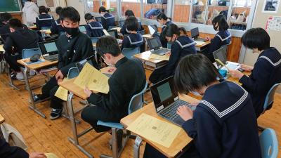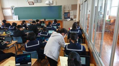 1人1台端末の熊本県先行実践校として、本校は取り組みが始まりまっています。