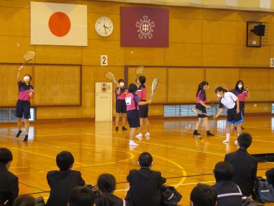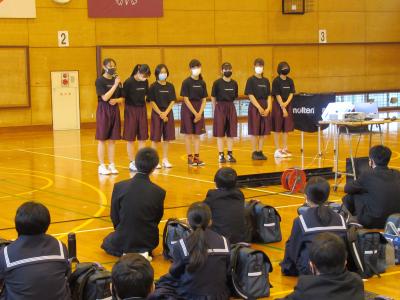 新入生の飛び入りチャレンジの場面もあり、付属中での部活動への意欲や期待が感じられる時間でした。
