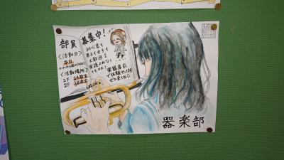 先日の部活動紹介とあわせ、校内には部活動の部員募集のポスターが掲示されています。